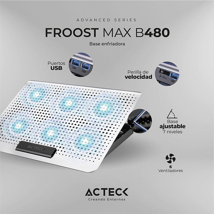 FROOST MAX B480 Base enfriadora, 2 puertos USB, 16 pulgadas tamaño de laptop compatible, con base ajustable 7 niveles.ESPECIFICACIONESProducto: Bas... Leer más