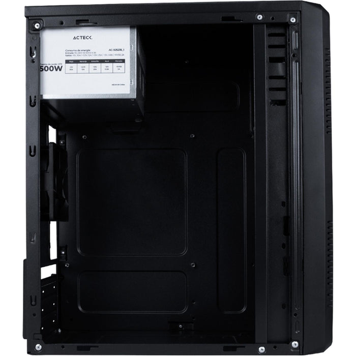 Compatible con tarjetas ATX, Micro ATX, Mini ITX. Fuente de poder de 500 W incluida. Espacio para administración de cableado.